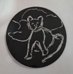 בשלב הראשון יש להכין את הבסיס. זוהי פלטת עץ מצופה לפחות בשלוש שכבות של צבע לכּה שחור. בשלב השני רושמים את הדימוי בעיפרון על גבי המשטח השחור. הדימוי שעלה בדעתי מייד היה כמובן חתול.